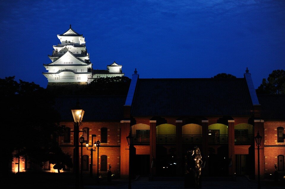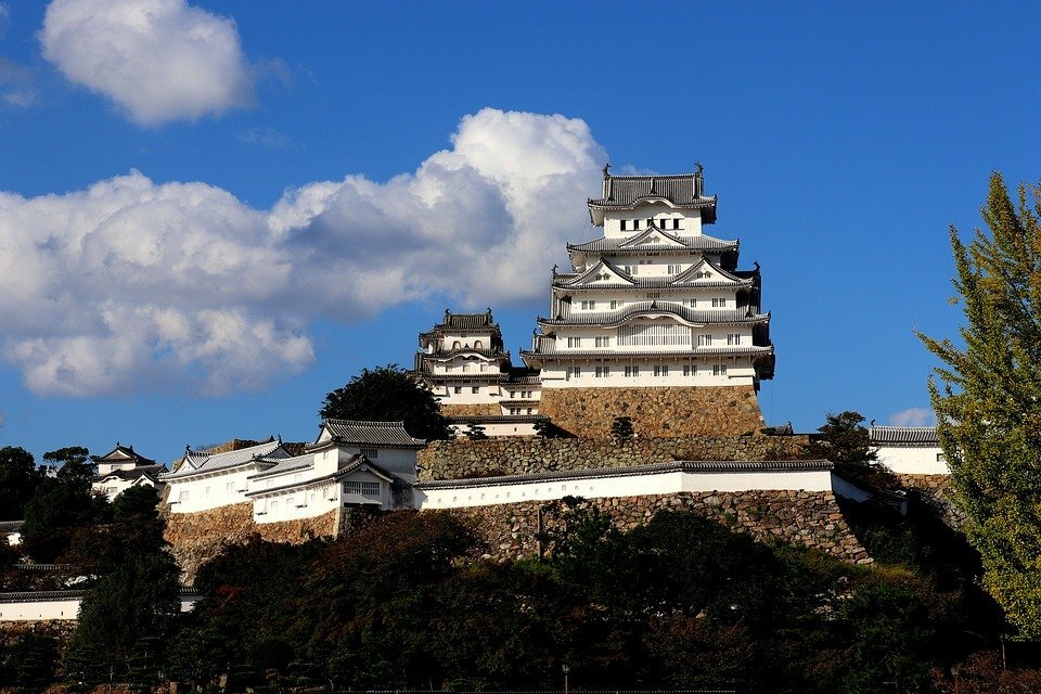 Химэдзи — древний замок, отлично сохранившийся до наших дней. Название «Химэдзи» дворец получил за свою элегантность и форму, которая напоминает белую взлетающую цаплю. Замок состоит из трех маленьких башен и одной высокой, ее высота 45 метров. Все они связаны между собой коридорами и различными проходами, которые и составляют внутренний двор дворца. В восточной части этого двора находится еще один двор, в котором самураи проводили свои обряды. Однако за всю историю замка, так ни одного обряда совершено не было.